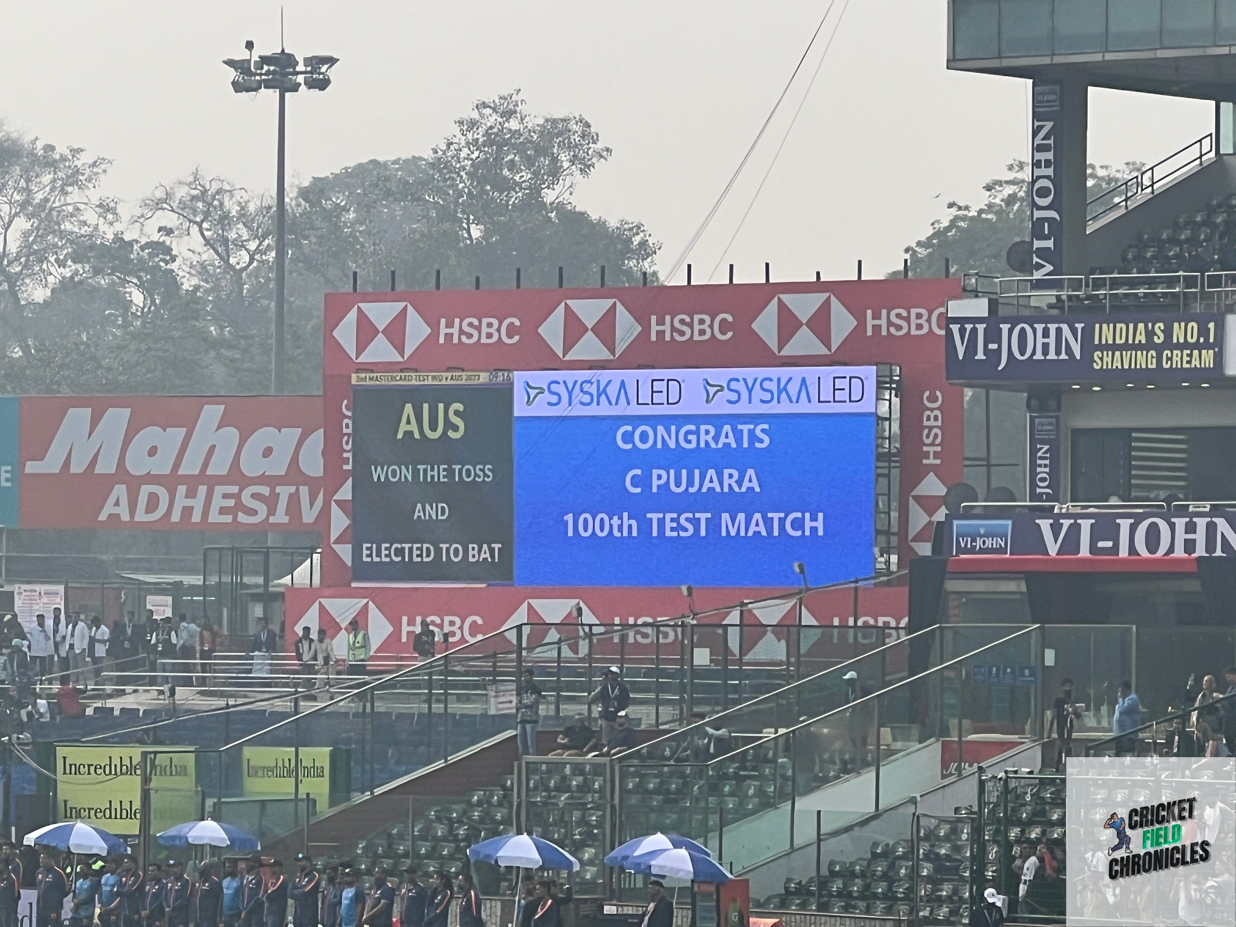 Ravi Shastri’s voice echoes through the advertisement-laden Kotla grounds as the captains make their way out for the toss. The Border-Gavaskar Trophy holds its pose in the background. Rohit Sharma is at his candid best. Cummins choose to bat. The Test is underway.